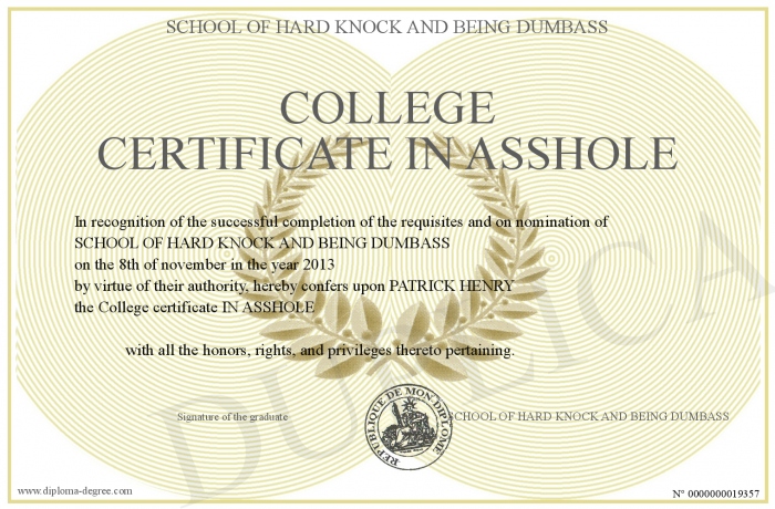 delivered to his owner by SCHOOL OF HARD KNOCK AND BEING DUMBASS !