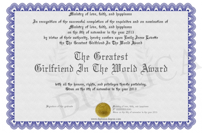 Certificate-degree can have your The Greatest Girlfriend In The World Award
