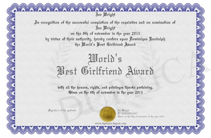 Certificate-degree can have your World's Best Girlfriend Award