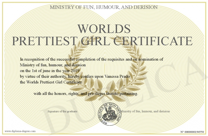 Certificate-degree can have your Worlds Prettiest Girl Certificate