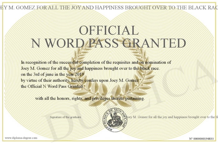 delivered to his owner by Joey M. Gomez for all the joy and happiness brought over to the black race. !