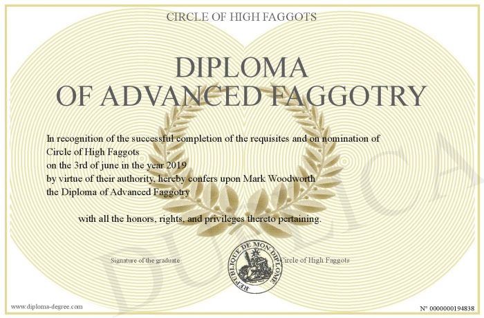 Certificate-degree can have your Diploma of Advanced Faggotry