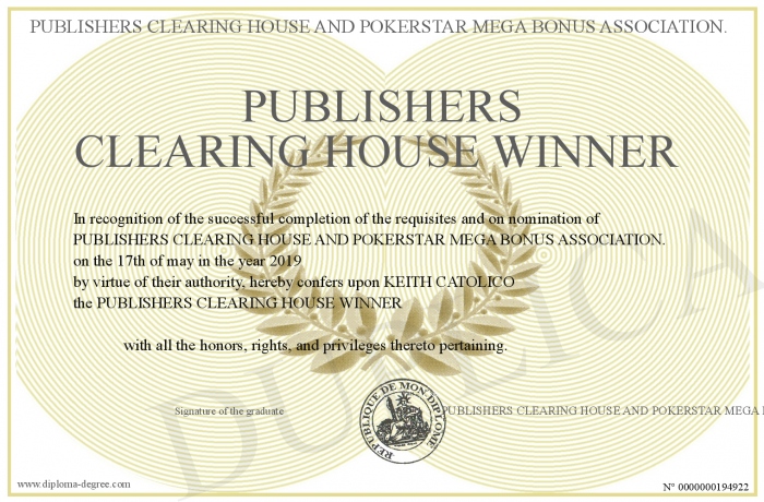 Certificate-degree can have your PUBLISHERS CLEARING HOUSE WINNER