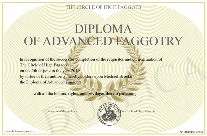 Certificate-degree can have your Diploma of Advanced Faggotry