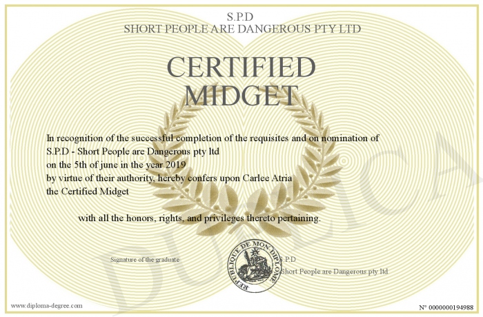 delivered to his owner by S.P.D - Short People are Dangerous pty ltd !