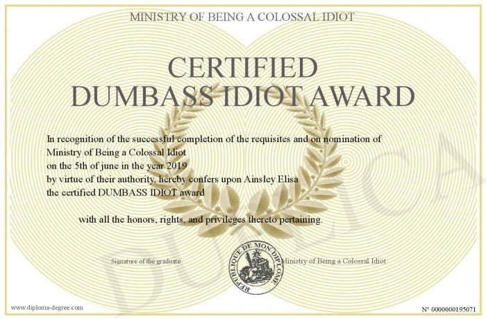 Certificate-degree can have your certified DUMBASS IDIOT award