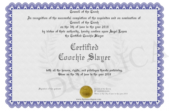 Certificate-degree can have your Certified Coochie Slayer