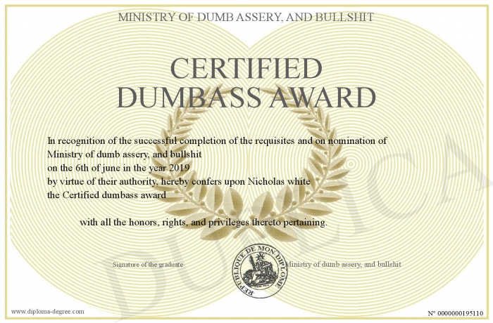 delivered to his owner by Ministry of dumb assery, and bullshit !