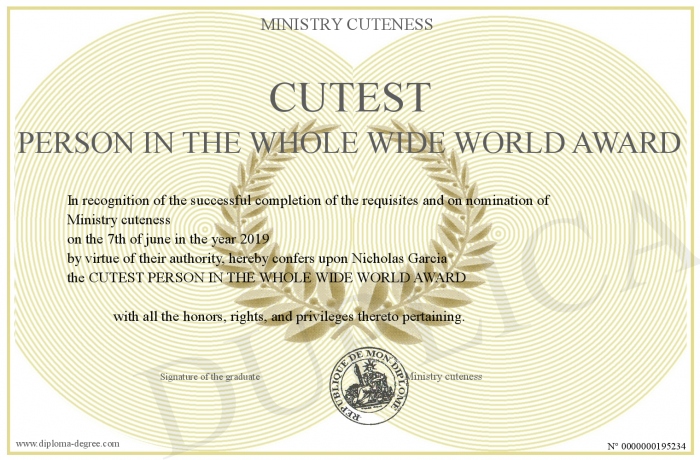 Certificate-degree can have your CUTEST PERSON IN THE WHOLE WIDE WORLD AWARD