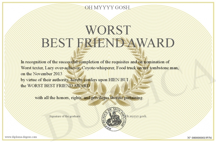Certificate-degree can have your WORST BEST FRIEND AWARD