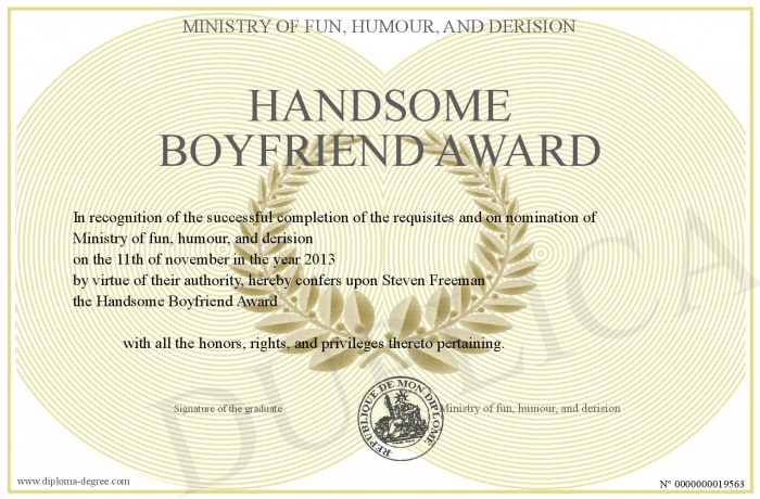 Certificate-degree can have your Handsome Boyfriend Award