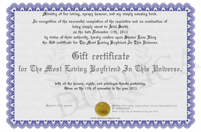Certificate-degree can have your Gift certificate for The Most Loving Boyfriend In This Universe.