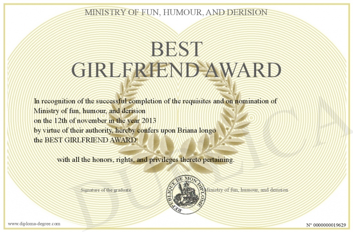 Certificate-degree can have your BEST GIRLFRIEND AWARD