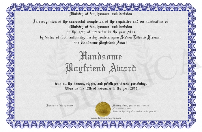 Certificate-degree can have your Handsome Boyfriend Award
