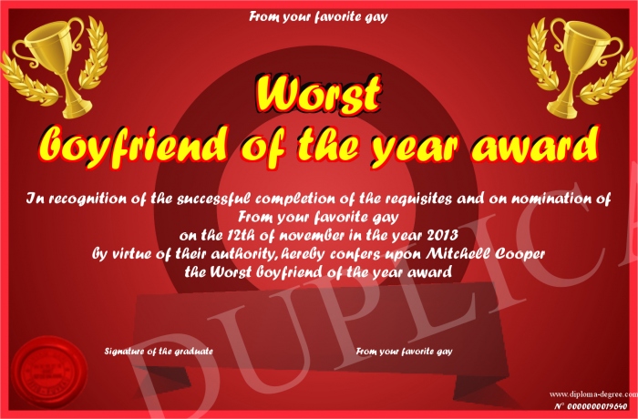 Certificate-degree can have your Worst boyfriend of the year award