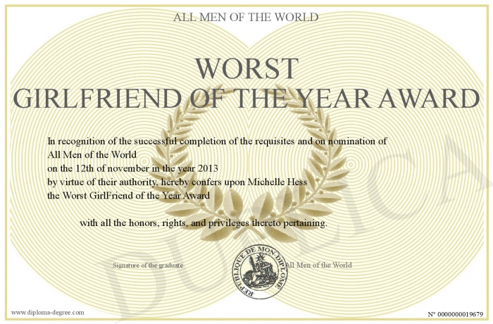 Certificate-degree can have your Worst GirlFriend of the Year Award
