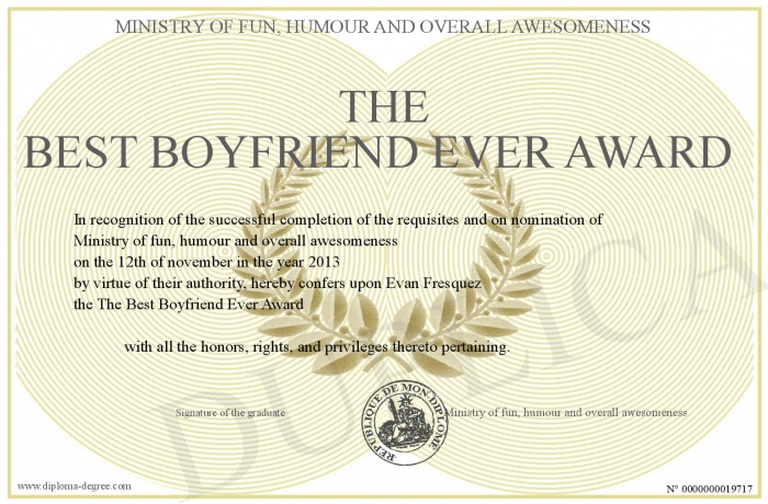 Certificate-degree can have your The Best Boyfriend Ever Award