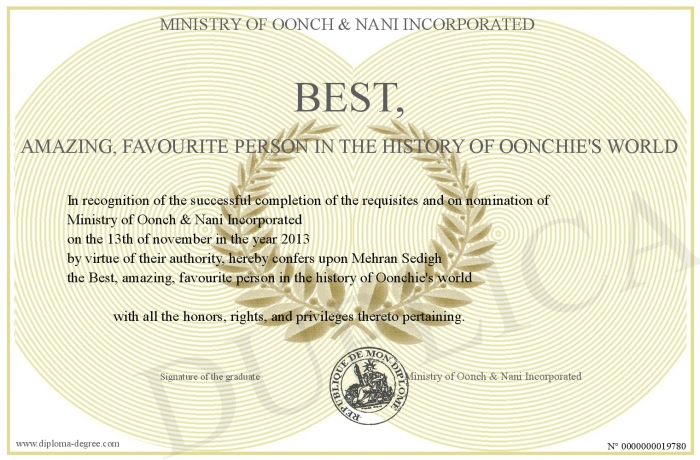 Certificate-degree can have your Best, amazing, favourite person in the history of Oonchie's world