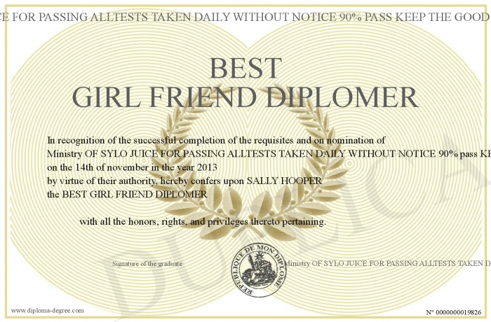 Certificate-degree can have your BEST GIRL FRIEND DIPLOMER