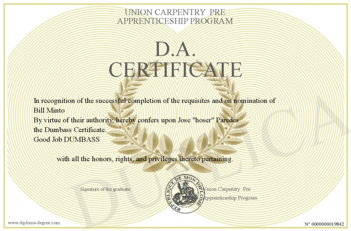 Certificate-degree can have your D.A. Certificate