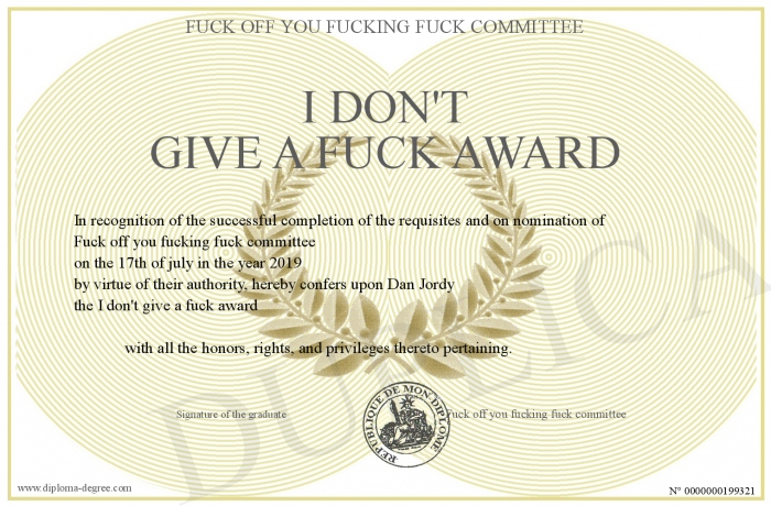 Certificate-degree can have your I don't give a fuck award