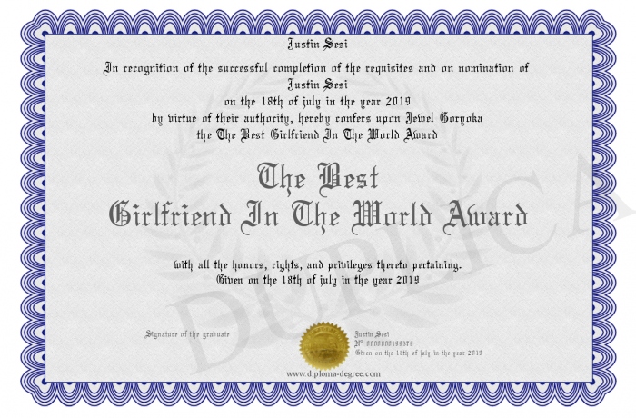 Certificate-degree can have your The Best Girlfriend In The World Award