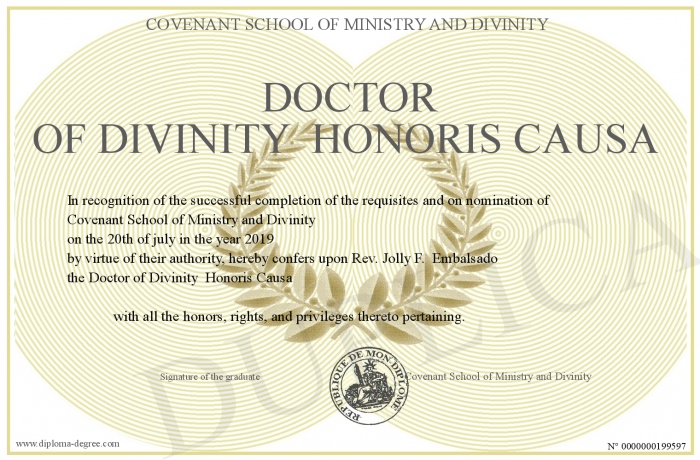Certificate-degree can have your Doctor of Divinity Honoris Causa