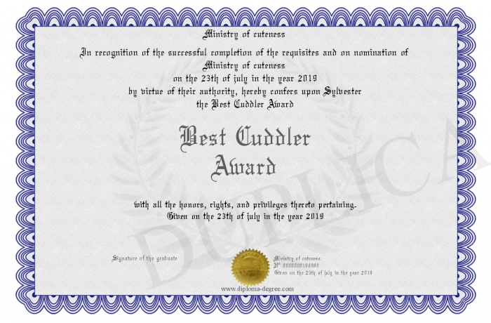 Certificate-degree can have your Best Cuddler Award