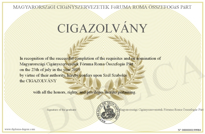 delivered to his owner by Magyarországi Cigányszervezetek Fóruma Roma Összefogás Párt !