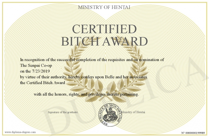 Certificate-degree can have your Certified Bitch Award