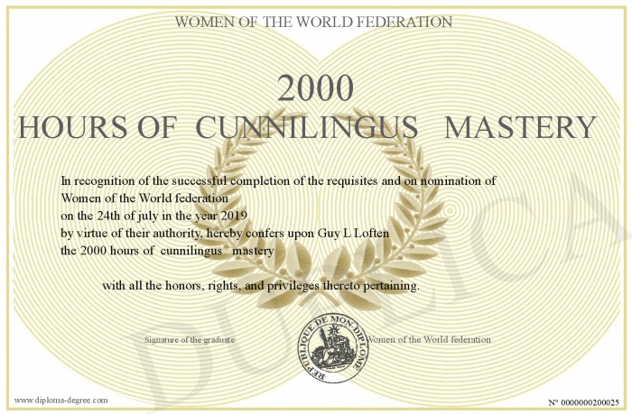 Certificate-degree can have your 2000 hours of cunnilingus mastery