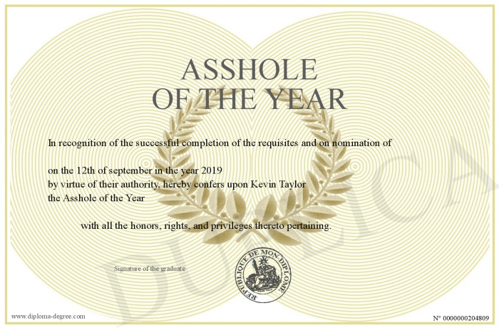 Certificate-degree can have your Asshole of the Year