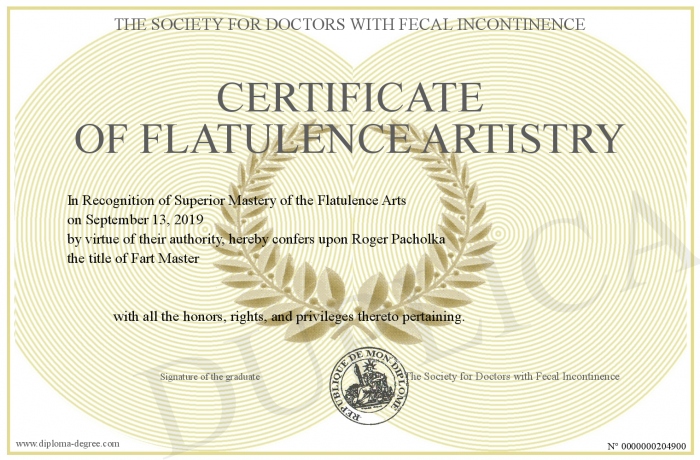 Certificate-degree can have your Certificate of Flatulence Artistry