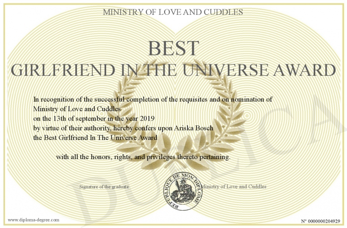 Certificate-degree can have your Best Girlfriend In The Universe Award