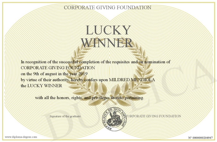 delivered to his owner by CORPORATE GIVING FOUNDATION !