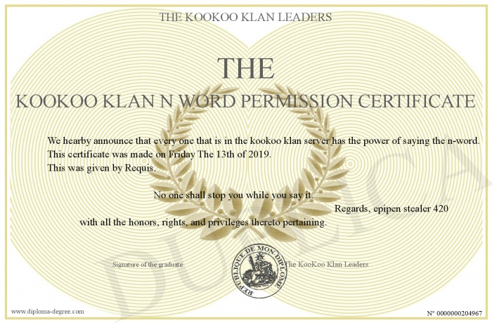 Certificate-degree can have your The KooKoo Klan N Word permission certificate