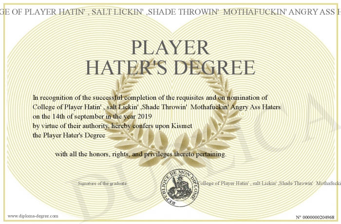 Certificate-degree can have your Player Hater's Degree