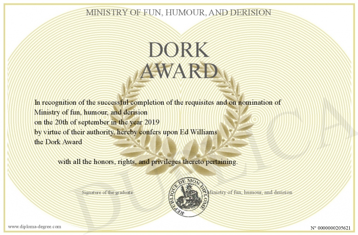 Certificate-degree can have your Dork Award