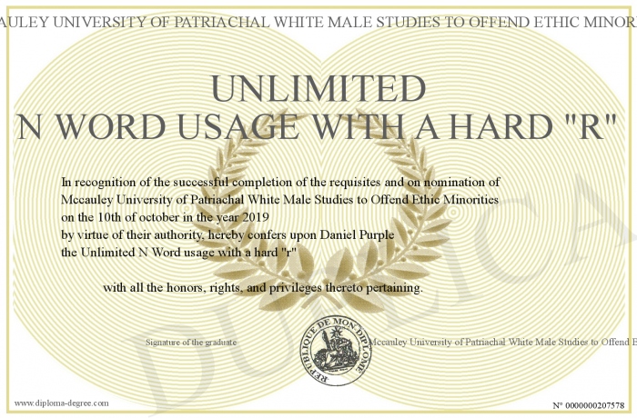 Certificate-degree can have your Unlimited N Word usage with a hard -r-