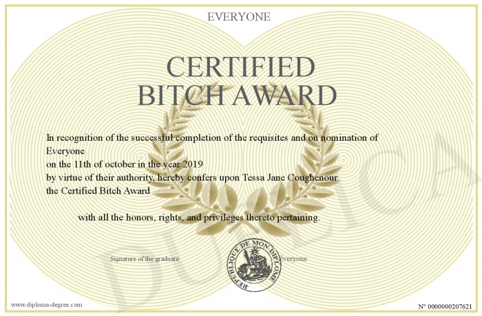 Certificate-degree can have your Certified Bitch Award
