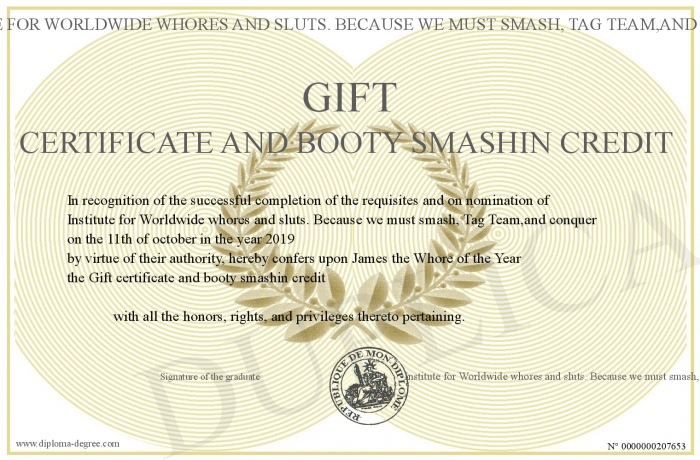 Certificate-degree can have your Gift certificate and booty smashin credit