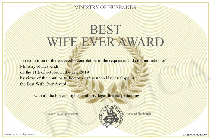 Certificate-degree can have your Best Wife Ever Award