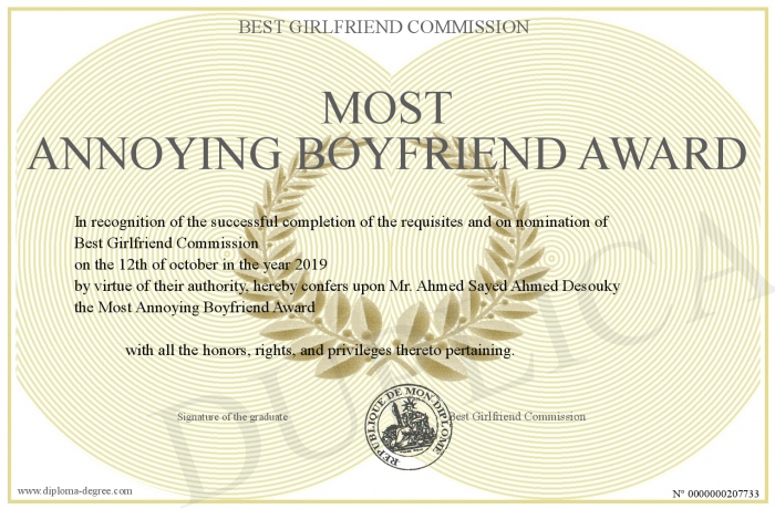 Certificate-degree can have your Most Annoying Boyfriend Award