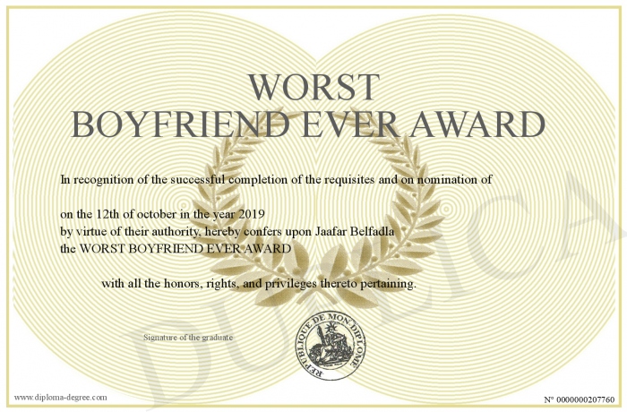 Certificate-degree can have your WORST BOYFRIEND EVER AWARD