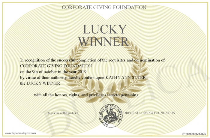 delivered to his owner by CORPORATE GIVING FOUNDATION !