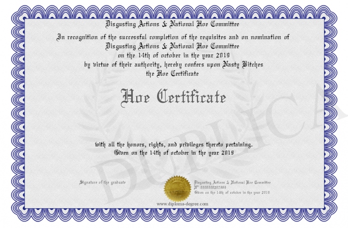 delivered to his owner by Disgusting Actions & National Hoe Committee !