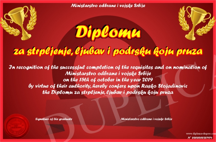 Certificate-degree can have your Diplomu za strpljenje, ljubav i podrsku koju pruza