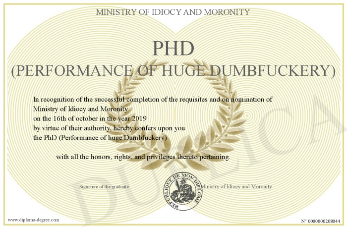 Certificate-degree can have your PhD (Performance of huge Dumbfuckery)