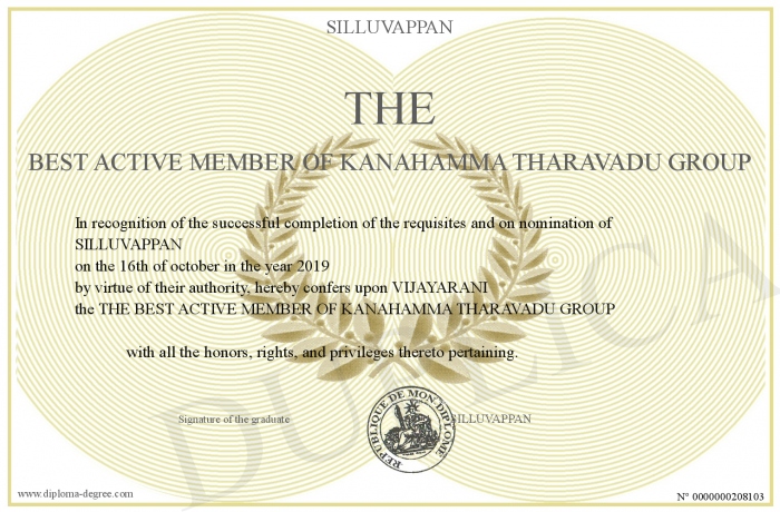 Certificate-degree can have your THE BEST ACTIVE MEMBER OF KANAHAMMA THARAVADU GROUP