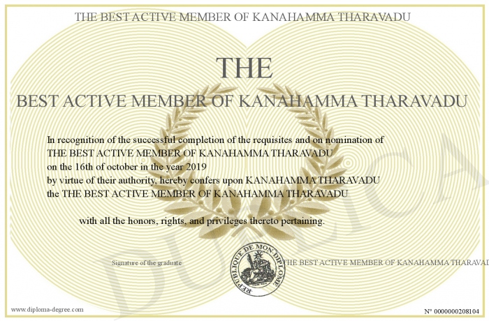 Certificate-degree can have your THE BEST ACTIVE MEMBER OF KANAHAMMA THARAVADU